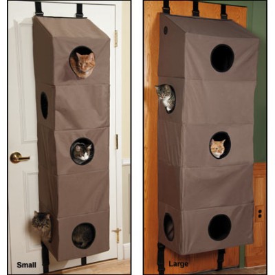 Le lit pour chat superposé! Idéal pour les petits espaces et pour les chats qui aiment les hauteurs. Idéal pour accrocher sur une porte. Les chats peuvent grimper les étages par l'intérieur.